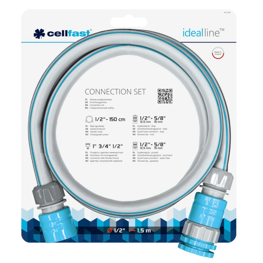 Mit dieser Anschlussgarnitur kannst du deinen Schlauchwagen nun unkompliziert mit dem Wasserhahn verbinden. Die Länge von 1,5 m lässt dabei ausreichend Spielraum zu. Die Anschlußgarnitur ist für 1/2“ Gartenschlauchwagen und Schlauchtrommeln geeignet. Mit diesem Anschluß-Set steigerst du die Flexibilität und Einsatzbereitschaft deiner Schlauchtrommel spürbar.