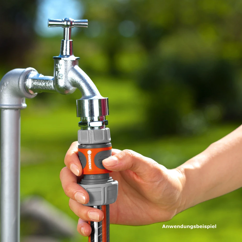 Der Schlauchverbinder von Gardena mit 3/4“-Anschluss ermöglicht einen schnellen und komfortablen Schlauchanschluss. Seine gerillten Griffmulden aus Weichkunststoff sorgen für angenehme Handhabung. Dabei garantiert die Spannmutter eine besonders hohe Schlauchhaltekraft. Durch einfaches Ziehen lässt sich die Verbindung lösen.