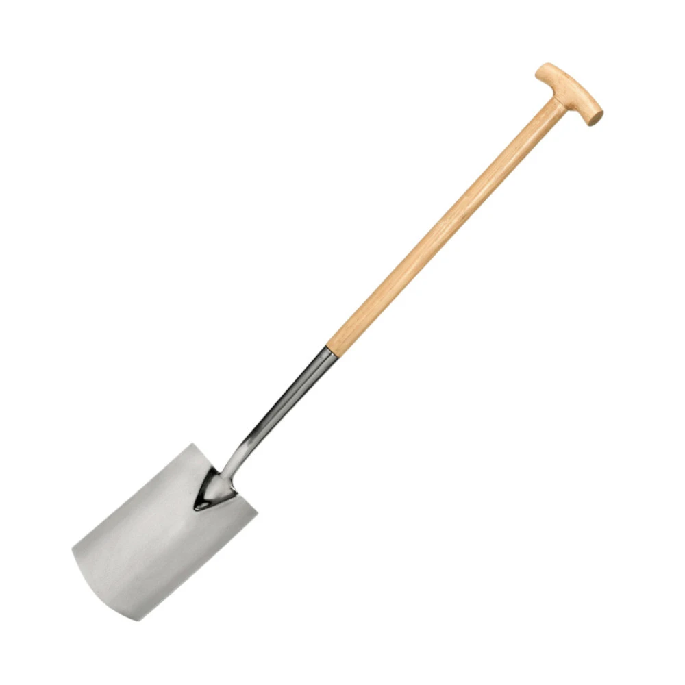 Der 1,15 m lange Spaten aus nachhaltig geerntetem Eschenholz und gehärtetem sowie hochglanzpoliertem Edelstahl eignet sich besonders für schwierige Grabarbeiten im eigenen Garten. Die Zusammenstellung aus hochwertigen und robusten Materialien machen ihn besonders widerstandsfähig im Kampf gegen jeden noch so hartnäckigen Untergrund. Seine 18 cm breiten Klinge ist mit einer Trittkante versehen um das Schuhwerk zu schonen und um das eigene Körpergewicht möglichst effektiv beim Graben einzusetzen.