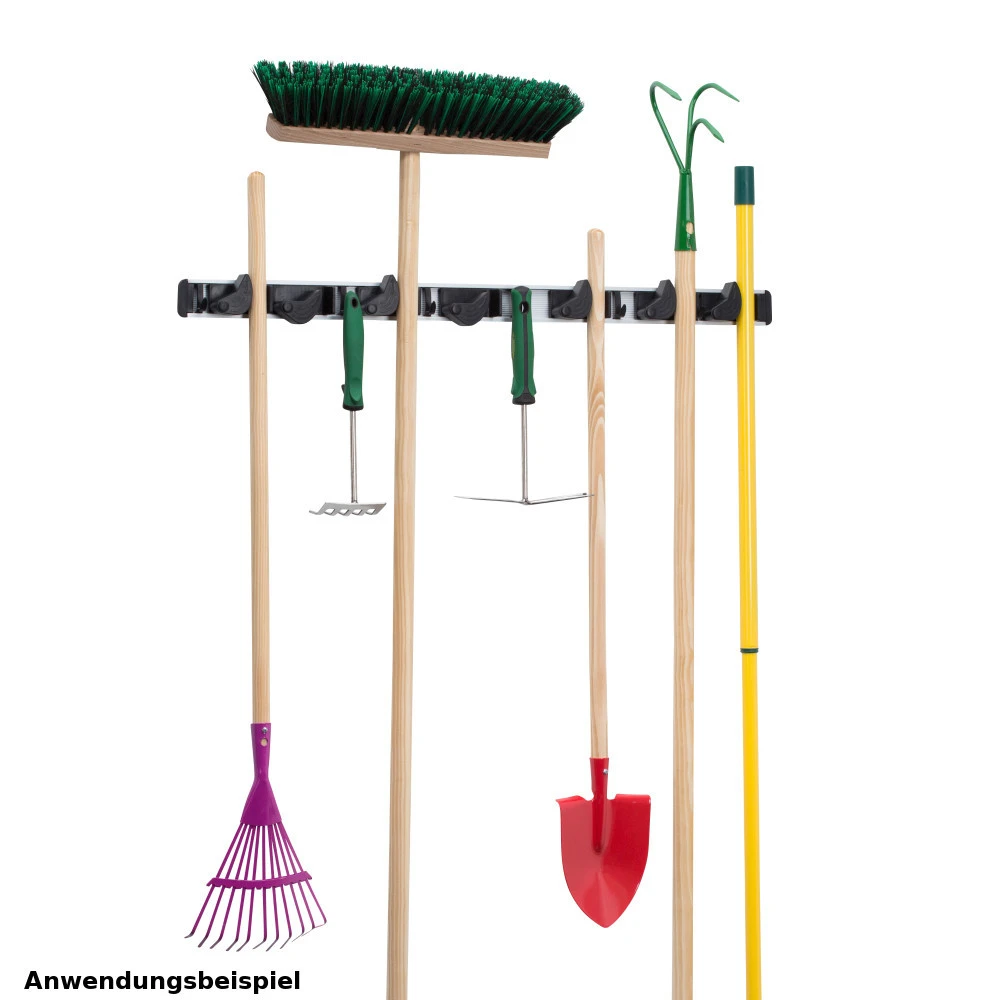 Die praktische Geräteleiste sorgt für mehr Ordnung in deiner Werkstatt, Garage oder Haushalt. Mit den jeweils 5 Haken und Halterungen ist es möglich lange Werkzeuge, Garten- oder Haushaltsgeräte bis max. 2,5 kg aufzuhängen.
