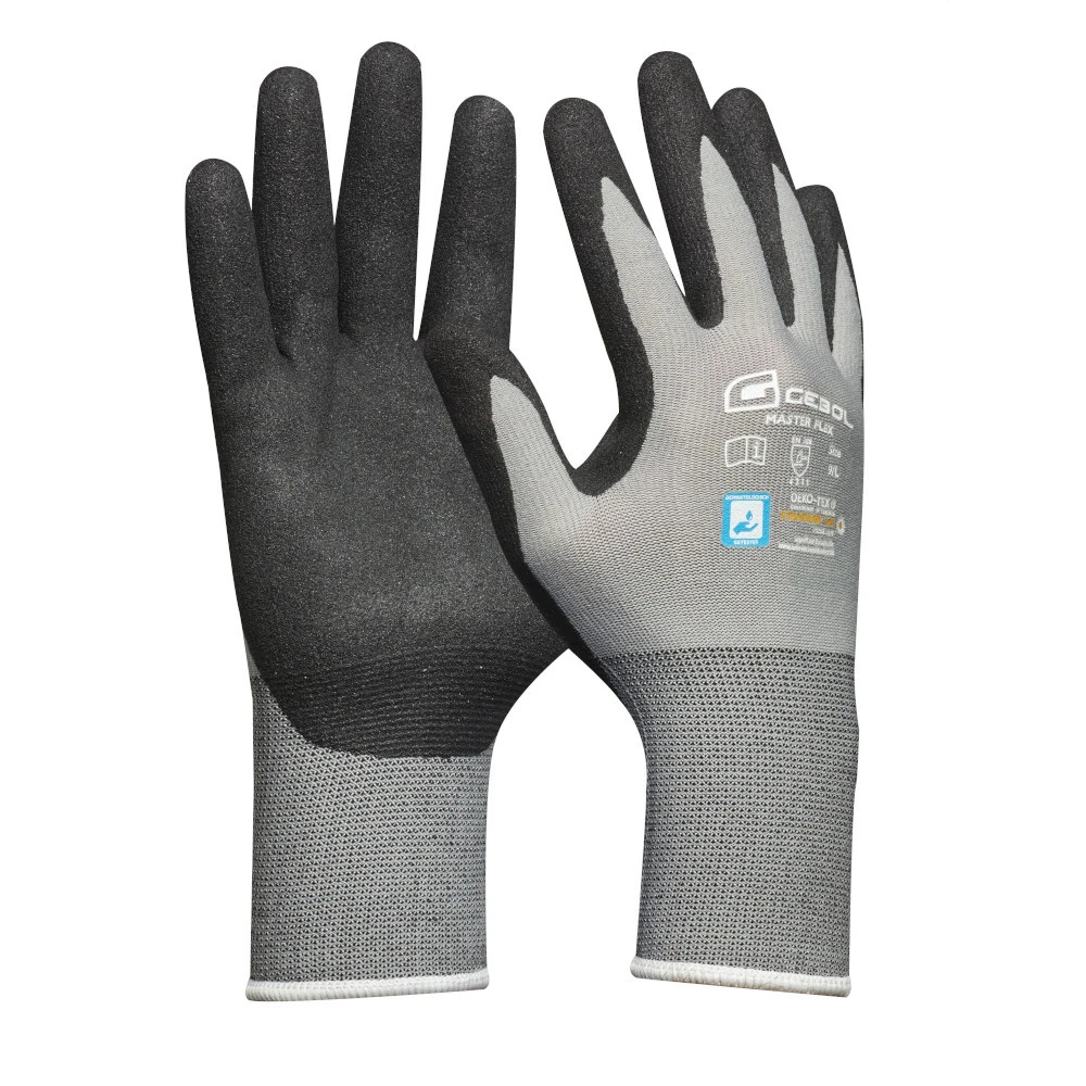 Der Master Flex ist durch seine Robustheit, seinen Tragekomfort und seine Atmungsaktivität der Allrounder unter den Arbeitshandschuhen. Der nahtlose Montagehandschuh mit seiner PPU-Nitrilbeschichtung und der guten Beständigkeit gegen Öle und Fette ist ideal für Arbeiten wie Reparaturen, Montagen, Tischlerarbeiten und Präzisionsarbeiten. Der Handschuh schützt bequem und leicht wie eine zweite Haut und bietet optimale Fingerfertigkeit und sicheren Halt, sogar auf rutschigen Gegenständen.