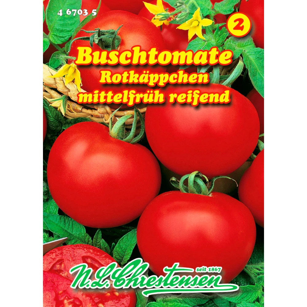 Die Buschtomate Rotkäppchen mit mittelgroßen, runden Früchten ist eine ertragreiche, mittelfrüh reifende Tomatensorte. Ihre besondere Platzfestigkeit und die Tatsache, dass das Gemüse sehr lange standfest und für alle Anbaulagen geeignet ist, zeichnet die Buschtomate aus. Ihre Früchte sind für den Frischverzehr geeignet.