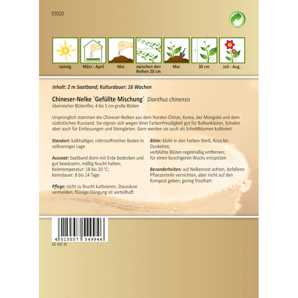 - Saatgut Chineser Nelke gefüllte Mischung, 2 Meter Saatband