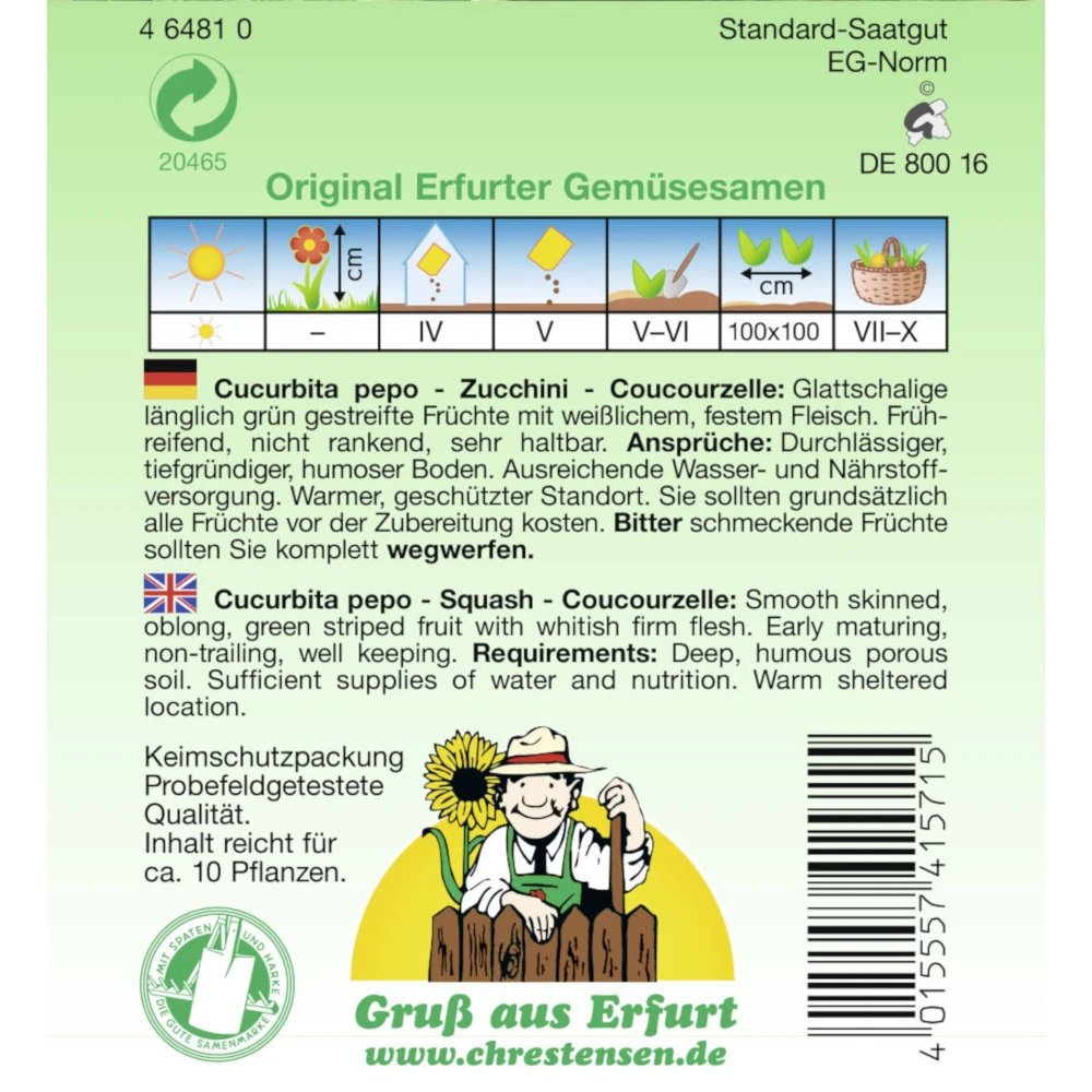 - 1 x Saatgut Zucchini, Coucourzelle (ausreichend für ca. 10 Pflanzen)
