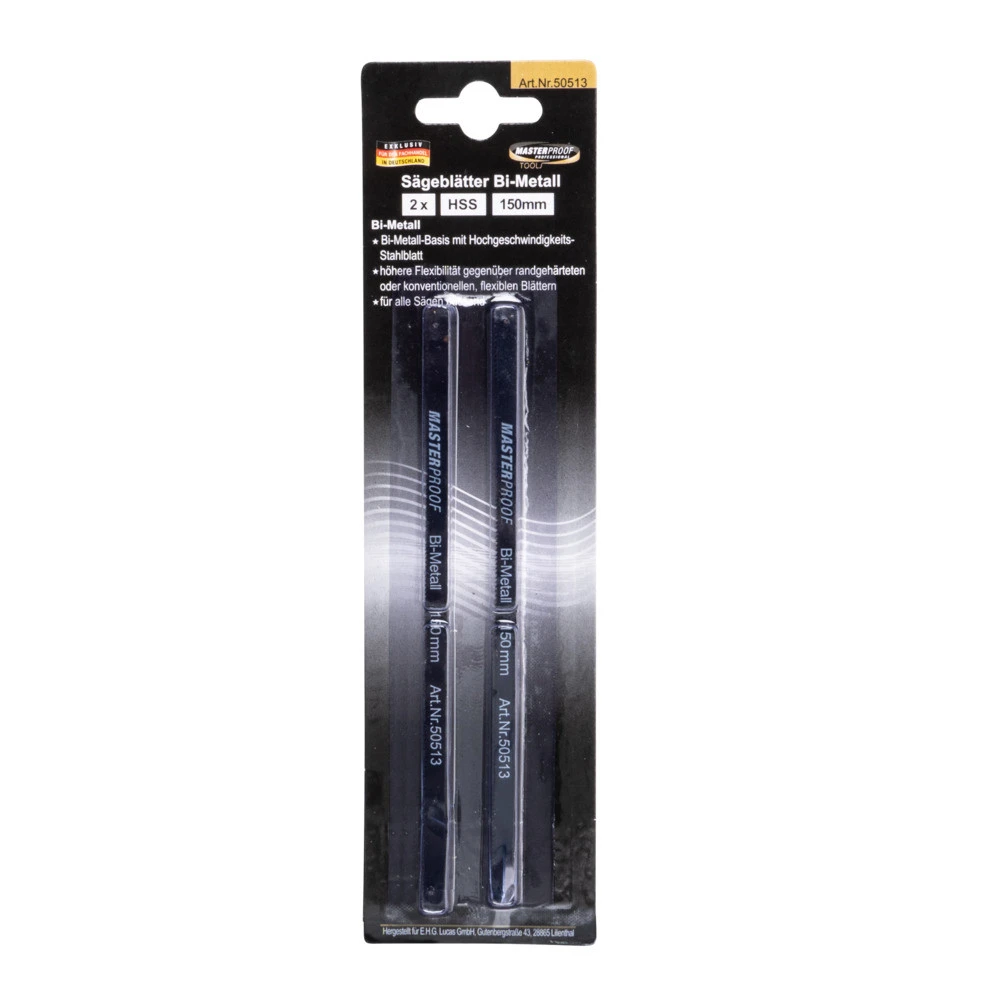 Die beiden Sägeblätter aus BI-Metall eignen sich mit einem Lochmittenabstand von ca. 150 mm für die gängigsten Bügelsägen. Sie sind speziell zum Schneiden von Aluminium oder Plexiglas entwickelt und sorgen für ein einfaches und reibungsloses Sägen mit guter Schnittqulität.
